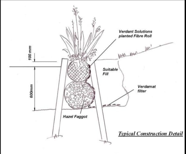 Faggots and Fascines can support coir fibre rolls at the correct height in the water, offer additional protection to the bank while the vegetation establishes and provide a safe aquatic habitat for small fish and invertebrates.